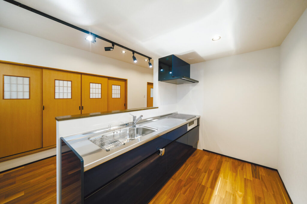 リビングの一部や水回りをはじめ、傷んでいた屋根や離れの一部もリフォームを施しました。壁に向く形でシステムキッチンがありましたが、SAKAIの提案で対面キッチンを採用。広い空間が損なわれてしまう不安もあったそうですがゆとりを確保しながら使いやすい空間へと生まれ変わりました。