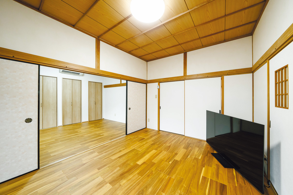 市外から移住し、新たな暮らしをスタートしたご夫婦の住まいは、離れのある一戸建て。空間を襖で区切る間取りや、存在感のある柱など、昔ながらの造りが現代では贅沢ともいえる住まいです。奥様のお兄様が所有していた物件ですが、手放すことになったため奥様が受け継ぐことに。直前まで賃貸として貸し出していましたが、古くなった家はところどころに傷みが生じていたり、現代の暮らしでは少し使いづらい間取りだったりと、「実際に見に行ってみたら、リフォームしないと住めない状態でした」と奥様は振り返ります。